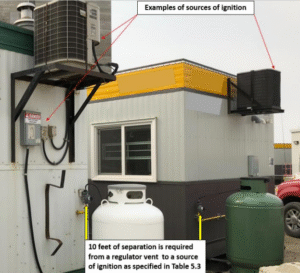 TSASK Gas and Electrical Inspections is reminding all gas and electrical contractors that the minimum acceptable clearance between a propane regulator vent and any source of ignition such